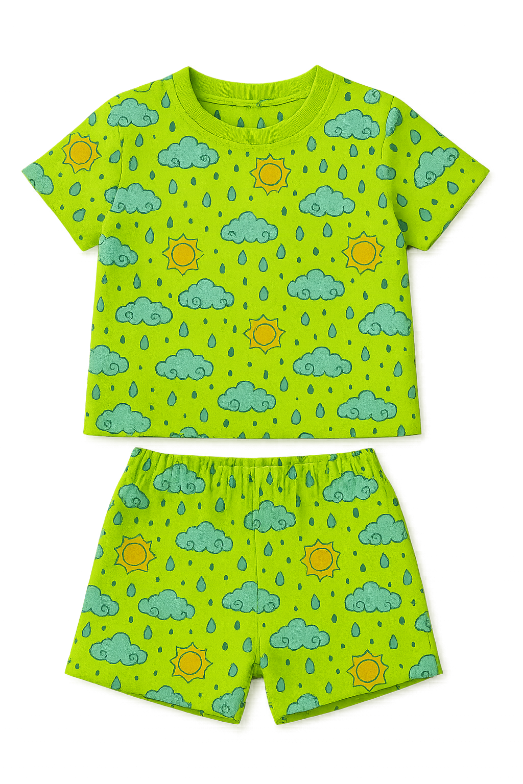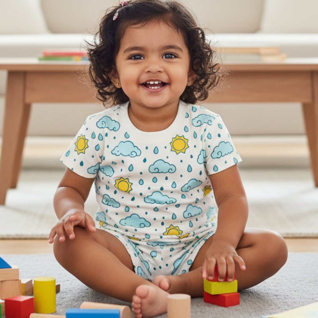 cloud drift t-shirt & shorts – smart, spill-proof baby outfit by doodledry