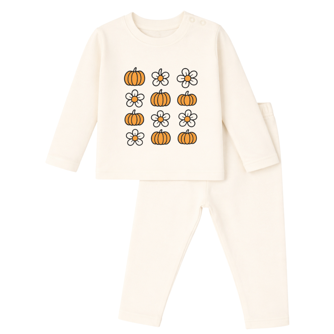 Pumkin flowers Cozy Cotton Wear for Babies & Kids | Unisex | White | Doodledry